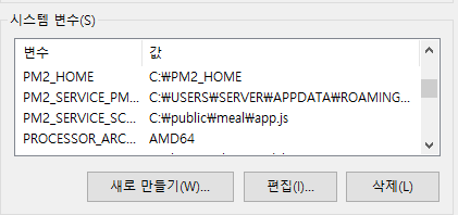 곰곰이 생각해 보니 내부, 외부명령, 실행할 수 없다.. 이 말이 무엇일까 생각하니 npm start 처럼 pm2-service-start 라는 명령어가 담긴 파일을 찾지 못하는 게 아닌가?라는 생각이 문뜩 들었습니다 그래서 환경변수 쪽을 확인해 봤으나 pm2는 정상적으로 설정이 된 것 같긴 한데 pm2-window에 문제가 있다는 확신이 들었습니다