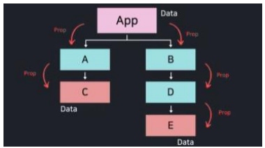 App에서 사용하는 데이터가 있을 때 C컴포넌트와 E컴포넌트에서도 사용하고 싶을 경우엔 컴포넌트 계층 구조에 따라 순차적으로 props로 넘겨줘야 합니다 이런 방식을 props drilling 이라고하는데 사용하지 않는 B, D 컴포넌트에서도 Props로 받기 때문에 효율적이지 못한 방식입니다 그러면 어떻게 효율적으로 상태관리를 할 수 있을까?